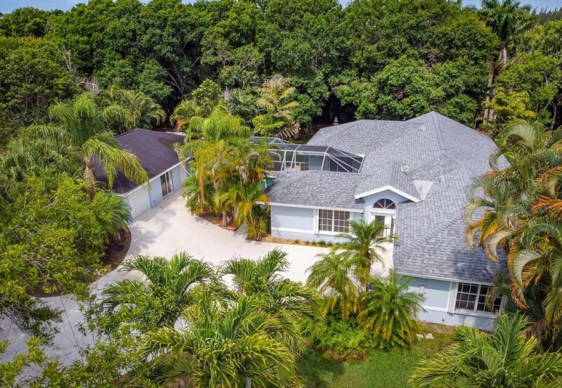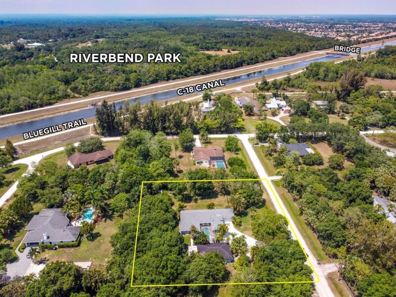 HUGE PRICE REDUCTION. beautiful courtyard-style CBS home on a 1.17-acre lot in Palm Beach Country Estates features a 3BR/3.5BA/2-car garage main house and additional detached 1BR/1BA/1-car garage guest house. There aren't many opportunities to own a property like this one. In addition to being in an area of PBCE that is extra peaceful - far from the highway - it is located just steps away from the spectacular Riverbend Park - featuring many miles of tree-shaded hiking, biking, and horse trails. The full-featured guest home is perfect for in-laws or possible short/long-term rental income - with 700sf of living area (included in the total) and its own screened porch and garage. Newer roof on the main house (2018). The pool deck, driveway, and garage floor are all newly-resurfaced.