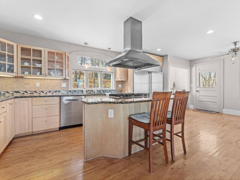 This enchanting home is in the heart of Princeton on Mount Wachusett, with close access to skiing, hiking, rail trails, and fishing. The perfect blend of antique charm with modern upgrades. The interior of this mountainside residence features an eat-in gourmet chef’s kitchen with professional stainless-steel appliances, custom cabinetry with under-mount lighting. It opens to a spacious living room with the original floor-to-ceiling fieldstone fireplace and a wall of windows. It leads out to an open veranda located off the living room on the main floor offering breathtaking views of the eastern skyline. One can distinctly see the Boston Cityscape fifty miles away on a clear day and the twinkle of the city lights in the evening. Located just off the dining/living room area is a bedroom with an attached full bath. There is additional street frontage with a garage foundation that could be built or extended up to the house for an additional driveway/garage access. Fresh air awaits!.