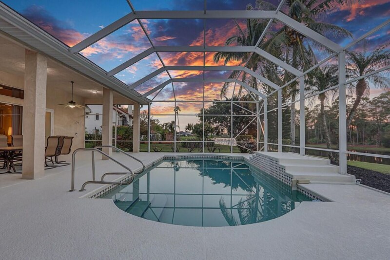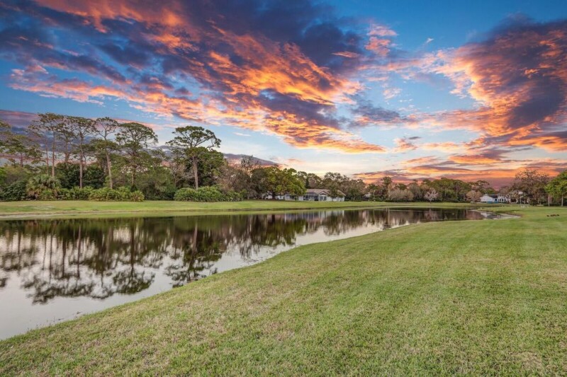 STUNNING 1.49-ACRE LAKEFRONT PROPERTY offers breathtaking water views & a tranquil, private setting. Boasting 4 spacious bedrooms, each with it's own ensuite bath, this meticulously maintained, one owner home showcases exceptional craftsmanship & quality finishes throughout. This luxurious property boasts an expansive and open floor plan designed for both comfort & entertaining. Upon entering, you are greeted by a formal foyer that leads into a light-filled living space. The spacious living room is in the heart of the home, featuring large windows that flood the space with natural light & a sleek wet bar, perfect for hosting guests. Open to the kitchen is a casual family room that offers a warm & inviting atmosphere with easy access to the covered lanai, blending indoor & outdoor.