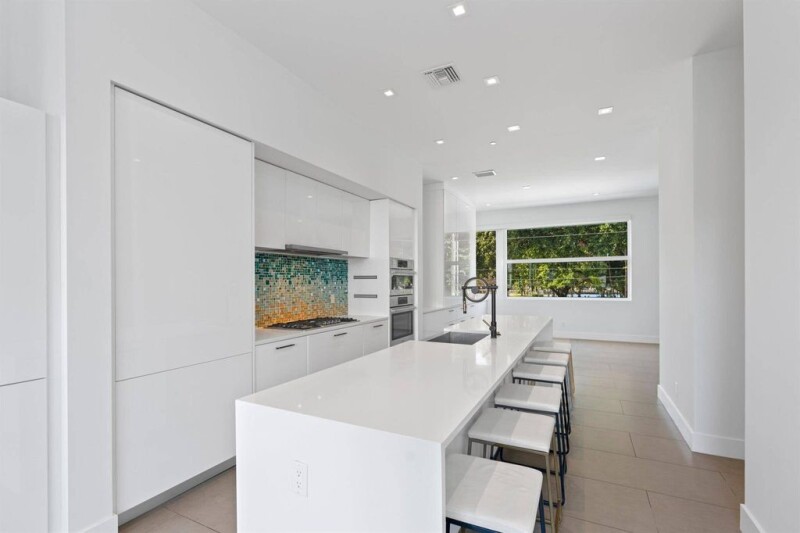 Park Slope townhomes' unit 1208 is in the Grandview Heights neighborhood, across from Howard Park, newly renovated public tennis courts, and the Armory Arts Center. Newly built in 2018 with beautiful views of the park, and its historic Banyan trees. The main level has one bedroom with a full bath and the large 2 car garage. The 2nd floor is the main living area, and a half bath, with a new built in storage-wall of cabinets. The floors are a neutral grey porcelain tile throughout all of the living areas. The kitchen has a gas cooktop, and wall oven, with built in refrigerator, and wine cooler. The open living area includes the living room facing the park, and the dining area off the kitchen with a pleasant view eastward as well.