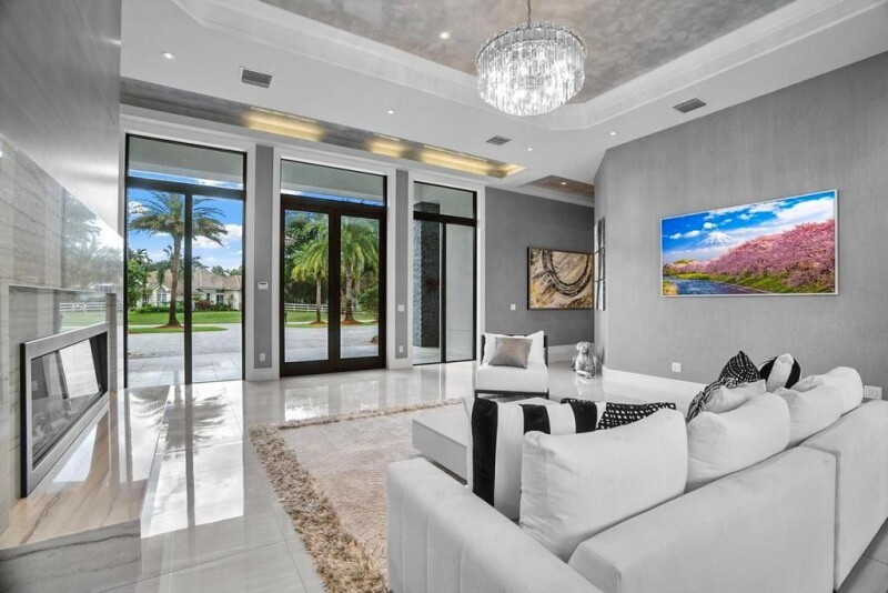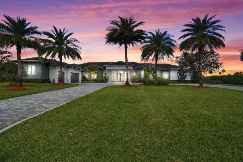 Sprawling, Modern, Contemporary 1-story like-new home custom built in 2020 on 1-acre in Boca Raton. This exceptional home, set on a sprawling 1-acre lot, offers a harmonious blend of luxury and functionality. The exterior boasts stunning stone features, a basketball hoop, and a paved driveway, while the expansive backyard features a saltwater pool, app-controlled hot tub, and an outdoor Sedona BBQ. The property is equipped with a 48KW full-house generator, a SWAT mosquito system for pest control, and an underground well that keeps water costs low. Inside, the home is equally impressive, with custom-designed wallpaper, a built-in entertainment center, electric fireplace, and a sleek bar area complete with a Jenn-Air ice maker, Sub-Zero fridge, and Liebherr wine cooler.