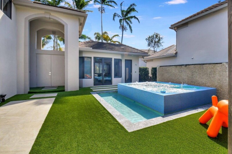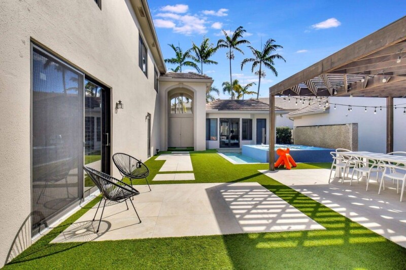 Luxurious 6-Bedroom Courtyard Estate in Broken Sounds Vintage Place. Step into elegance with this stunningly renovated 6-bedroom, 6-bath courtyard estate in the prestigious Village of Vintage Place in Broken Sound. Spanning 4,412 square feet, this home boasts soaring volume ceilings and a bright, open floor plan designed for modern living. The primary suite is conveniently located on the main floor, offering a serene retreat with spa-like amenities. The heart of the home is the expansive great room, where a chefs dream kitchen features a large center island, custom cabinetry, and high-end appliances perfect for entertaining. Step outside to your private courtyard oasis, complete with a splash pool, covered barbecue area, and sleek modern astroturf. A separate backyard offers even more.