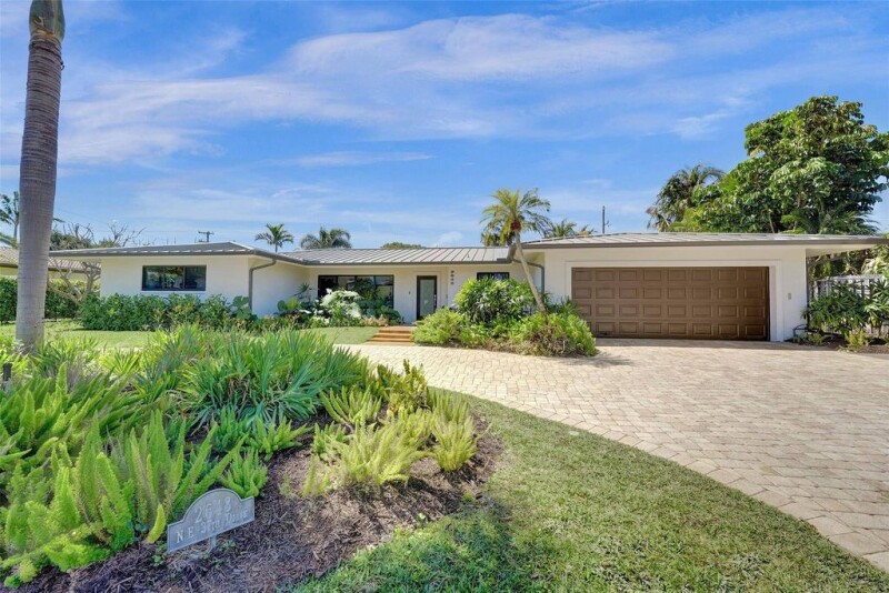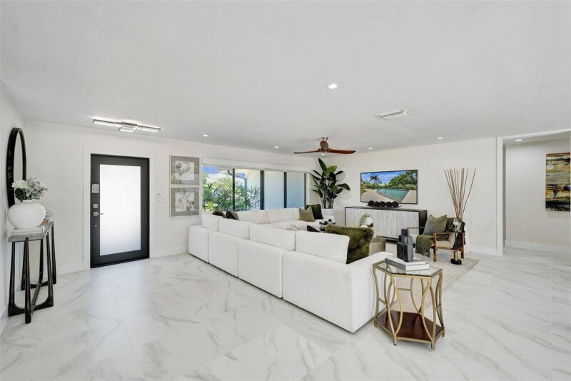 Welcome to your exquisite retreat in the prestigious Coral Ridge Country Club neighborhood of Fort Lauderdale. This beautifully remodeled home offers 3,295 square feet of luxurious living space, featuring four spacious bedrooms, a dedicated home office, and three and a half elegantly remodeled bathrooms. Step inside to discover an open floor plan with porcelain tile floors in the central area and hardwood in the bedrooms. The expansive living area flows seamlessly to the pool and patio through three sliding doors. Surrounding the large 15x40 pool, the lush backyard is adorned with mature trees, creating an ideal setting for entertaining and relaxation. This home has many upgrades including brand-new impact windows, a new pool heater, a 2020 metal roof, 2024 AC, and a tankless water heater.
