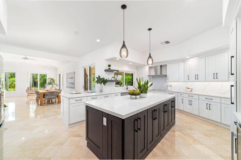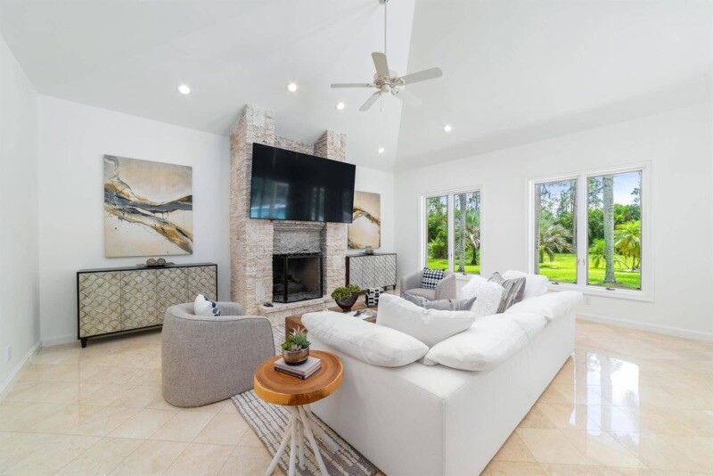Adventure awaits on this 9.87 acre estate! Nestled among the palms, this brick home is your escape from the everyday. The heart of this home lies in the newly designed kitchen with its quartz topped expansive center island. Several banks of pantry storage cabinets with pull-out drawers, soft close cabinetry, a wine fridge with coffee nook and a pass through window complete the space. Entertain to your heart's desire, with elegant formal dining and living rooms ready for company. When it's time to get down to business, your dedicated office is both spacious and functional with luxurious wood panel detailing. The peaceful primary suite features double walk-in closets, a large shower, jetted tub, a linen cupboard and separate water closet with a bidet.