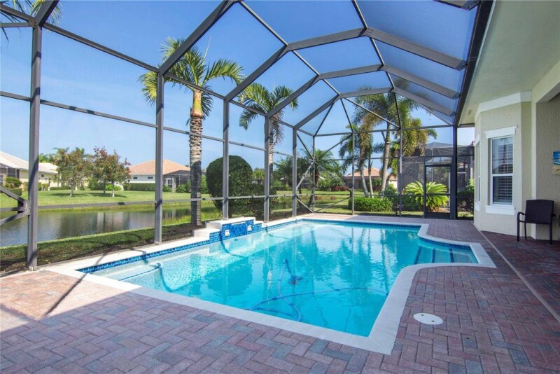 Arguably the finest view in Riverwind, showcasing a serene vista of the lake and its wildlife. This refreshed, updated, and expanded Ashley model, with over 2,900 sq ft, features a remodeled heated pool with new tile and resurfacing. The whole-house generator and updated kitchen come with newer stainless steel KitchenAid appliances and quartz countertops. The master bathroom has been updated with granite counters. The garage and floors have been recently painted. The community clubhouse and pool have recently been refreshed.