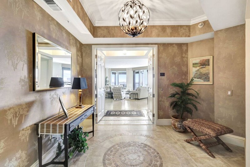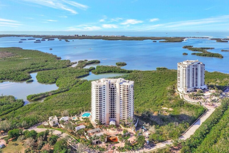 Avoid the wait list and play golf immediately on the emerald fairways of The Colony Golf & Country Club. Offered furnished, this beautifully Robb & Stuckey-furnished corner residence offers a spectacular view of Estero Bay and The Gulf of Mexico beyond! Upon entering your private elevator foyer you'll be coaxed into the elegant, yet relaxing living room furnished in the British Colonial style with expansive lanai beyond, offering storm protection and plenty of room for friends to gather. Entertain family and friends in the large kitchen overlooking the more intimate family and breakfast room, all offering stunning views. Guests enjoy complete privacy in separate bedrooms with en suites, each connected to an east-facing lanai, ideal for that morning cup of coffee and sunrise view. Retire to the palatial primary suite with dual closets, and after a long day on the golf course or tennis courts, enjoy a soak in the large jetted tub. Sunsets are the evening's entertainment as the glow paints the night sky. Palmero at The Colony is the epitome of elegance with just 71 beautifully appointed residences, all enjoying a resort-style pool, poolside cabana, exercise room, social and gathering room with billiards table, and private movie theater. Just a short walk to The Colony Bay Club offering first-class dining in an unbelievable bayfront setting and an even shorter walk to the kayak park where the best of the Florida outdoors can be enjoyed close up! Additional guest suites host family members close by. The Colony Golf & Country Club community is close to nearby Coconut Point Mall, with dining, shopping and entertainment, and the airport is a quick 20-minute drive. The Bay Club is a private waterfront restaurant exclusive to Colony residents. There is also a private beach island accessed by a nearby water shuttle, and canoe and kayak, fitness, pickleball, tennis and bocce complete your luxury lifestyle.