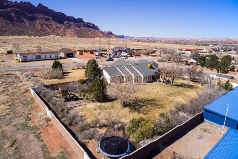 BRIGHT AND SPACIOUS SPANISH VALLEY HOME. This 3-bedroom, 2-bathroom home sits on one acre in Spanish Valley, offering 2,860 sq ft of open-concept living with great natural light. The primary suite includes a walk-in closet, double vanity, two oversized reach-in closets, and a sliding door to the backyard for easy outdoor access. The massive backyard is perfect for relaxation and entertainment, featuring a pergola, drip irrigation, and wiring for a hot tub or sauna. A bonus oversized space provides endless possibilities-convert it into a mother-in-law suite with private access, create a rental opportunity, or design the ultimate entertainment area. Additional highlights include an EV-wired two-car garage and two storage sheds, steel beam construction, extra storage space in the attic with stairs for access.
