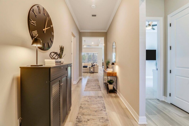 Experience resort-style turn-key luxury at Avenir, a premier Palm Beach Gardens community. This elegant 3-bedroom, 2.5-bath home sits on a desirable corner lot, offering privacy, space, modern upgrades and is being offered fully furnished. The gourmet kitchen features quartz countertops, upgraded cabinetry, and a custom pantry, and flows into a bright, open great room. Large windows invite natural light, while sliding doors lead to an extended covered lanai for year-round outdoor living. The primary suite boasts custom closets and a spa-like bath, while the additional bedrooms also include custom closets. Custom window treatments, stylish ceiling fans, and landscape lighting add sophistication. Enjoy resort-style amenities, all just minutes from top shopping, dining, and golf.