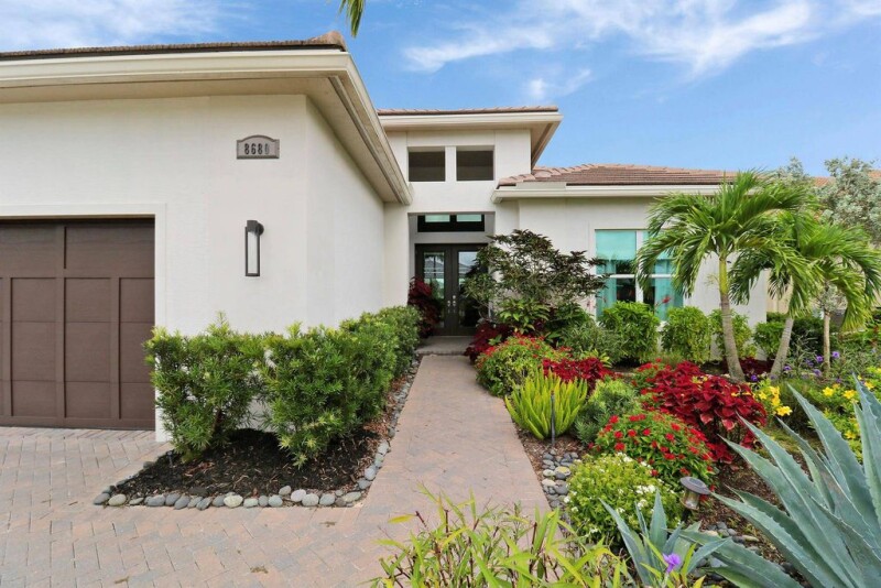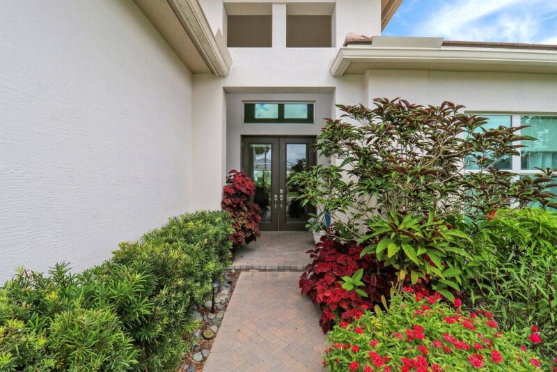 ELEGANT TROPEA FLOOR PLAN WITH PRIVATE POOL IN PGA VERANO! Rare find with this spacious 3BR+Den/3BA/2.5CG home! Beautifully upgraded w/tropical landscaping, IMPACT GLASS windows & doors, wood-look tile throughout main living areas & den, carpeted bedrooms, upgraded light fixtures & ceiling fans, glass front entry doors, spacious laundry room, garage extension and more. The open great room is ideal for gathering and has dual sliders that overlook the gorgeous pool area! The kitchen features white cabinetry, SS appliances with cooktop & wall oven, quartz counters, pendant lighting, a center island with breakfast bar, and a casual dining area. Master suite with tray ceiling features a spa-like ensuite with dreamy walk-in shower and quartz topped vanity with dual sinks.