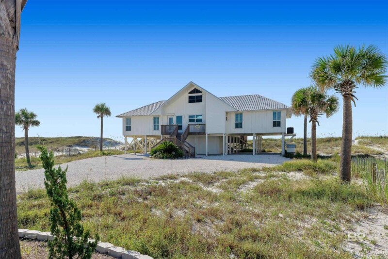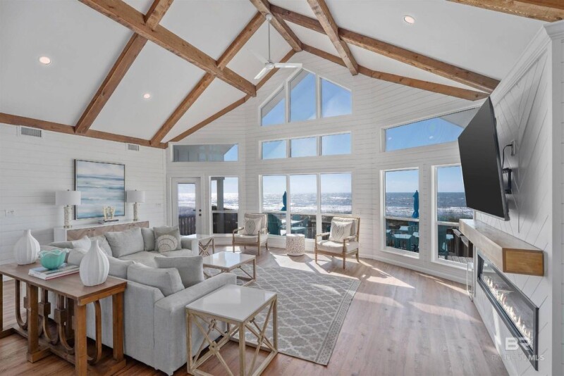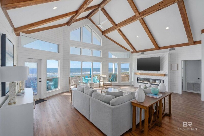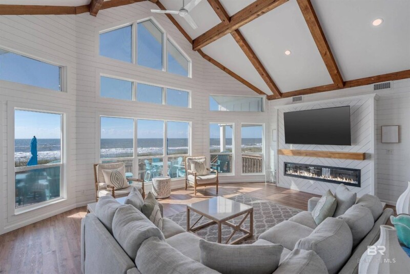 Amazing views in this private home with a wall of windows that look to the gorgeous beach! Discover coastal living at its finest in this newly remodeled Gulf-front home on a 100 ft. beachfront lot. This gorgeous property offers a unique opportunity to own a piece of paradise on private, West Beach in Gulf Shores with absolutely amazing, unobstructed views of the white sands of the beach and it's glistening waters. Spanning four spacious bedrooms and four beautifully updated bathrooms, this home is a haven of style and coastal living. Two primary bedrooms with beach front views, each with remodeled bathrooms featuring new walk-in showers, provide perfect retreats for relaxation. Step outside onto the large Gulf-front deck, perfect for sipping your morning sunrise coffee or peaceful sunset gatherings. Newly installed features include beautiful ship lap walls, modern fireplace, metal roof, energy-efficient windows, new electrical and plumbing, new duct work, new windows, recessed lighting, solid core doors and hardware. The exterior is freshly painted in the perfect color and offers a huge deck for sun bathing and soaking in the fabulous views. For those interested in investment, this property also offers lucrative rental income potential, thanks to its coveted location and premium upgrades. The location appeal is undeniable, with not a condominium in site in a private area that includes a 5-foot pedestrian easement to the lagoon, offering both beach and lagoon access. You'll enjoy both the tranquility of a secluded beach home and the vibrancy of the Gulf Shores and Orange Beach area. This is more than just a home; it's a chance of a lifetime to live on the waters edge where this home sits, built prior to the latest set-back guidelines. Ready to kick off your shoes and stroll through the soft sands as a Gulf Shores local or own a fantastic investment for your many rental guests? This beach front beauty is calling your name. Buyer to verify all information during due.