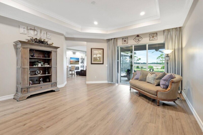 Enjoy pristine preserve views from this 4 bed, 4.5 bath + den + bonus room, home. Situated on just under 1/2 acre, this property provides ample room for a custom pool & has been impeccably updated, blending modern convenience with elegant charm. The open floor plan is perfect for entertaining, with large impact windows & doors flooding the space with natural light while offering stunning nature views. ''Wood look'' tile flooring throughout adds a touch of sophistication, while crown molding, wainscoting & plantation shutters enhance the home's elegant appeal. The gourmet kitchen was remodeled in 2024 & features new cabinetry, granite countertops, new appliances & a spacious walk-in pantry. The primary suite is a true retreat, with 2 custom walk-in closets & a spacious remodeled bathroom.
