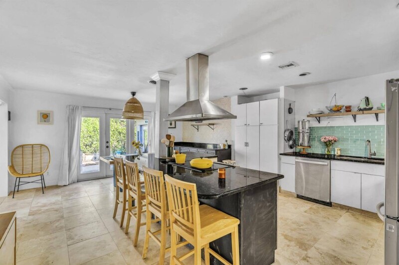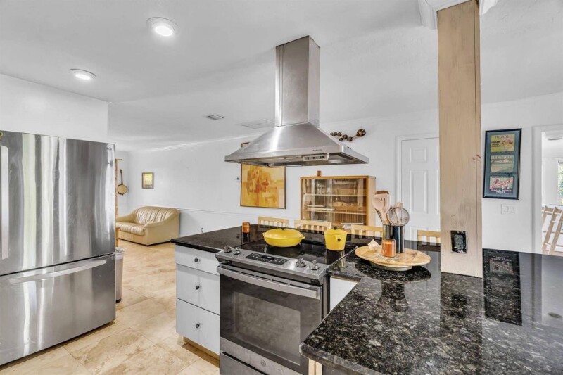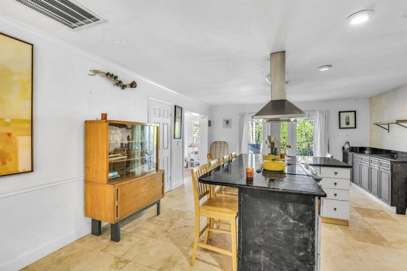 Walk to Miracle Mile & just 6 minutes from the beach--Oakmont Park Estates offers an unbeatable location & charm! This stunning CBS home features a 3-bed, 2-bath + office main house & an attached 1 or 2-bed, 1-bath in-law suite with a private entrance. Enjoy a spacious living area, modern eat-in kitchen with white cabinetry, granite countertops, a large island with seating & stainless steel appliances. French doors open to a fully fenced yard; perfect for relaxing & entertaining. 2024 roof, 2 driveways, 1-car garage, beautiful bougainvillea & lush FL landscaping complete this exceptional home!.