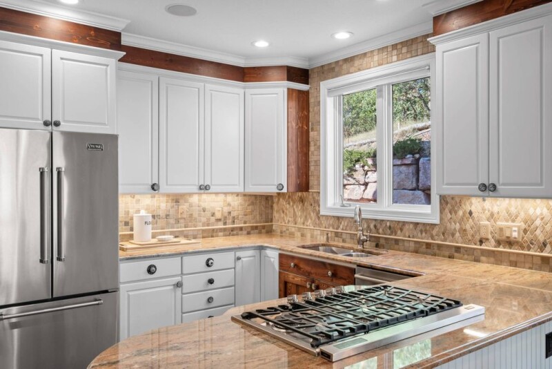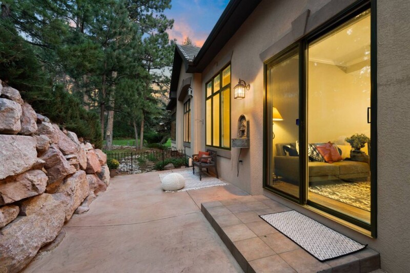 Welcome to this 5 bedroom | 4 bathroom mountain contemporary residence located in the coveted Village at Castle Pines community. Backing to a lush greenbelt, Colorado’s natural beauty shines through from the outside in, giving this home the feeling of a mountain retreat. On entering, you’ll find lodge accents throughout as you step into the 2-story foyer, which opens to a great room featuring vaulted ceilings and a dual-sided gas fireplace. Ideal for entertaining, the dining room offers seating for 10+ and designer lighting. The kitchen + breakfast nook boasts themed cabinetry with decorative hardware and high-end appliances, and sits adjacent to a family room with gas fireplace and sliding door access to the back patio. Also on the main level, the primary suite is bathed in natural light and offers 2 fully organized closets. The tranquility of the updated en suite primary bathroom is highlighted by dual granite vanities, a freestanding tub with pebble honed mosaic tile floor, and a glass-faced shower. Finishing off the main level are a sizable office, powder room with designer wallpaper, laundry room, and oversized 3-car garage with expanded storage space. As you climb the elegantly carpeted staircase to the upper level, you’ll find 2 spacious bedrooms with a shared full bathroom. The expansive lower level is ready to entertain and includes a 2nd kitchen, cabin-themed recreation and game rooms, bedroom currently used as a workout room, additional bedroom with walk-in closet, full bathroom, den, and finished bonus space: perfect for a wine room. Located on a quiet cul-de-sac, the peaceful lot is framed by mature pine trees and features a stamped concrete patio, gas firepit, and a striking rock retaining wall. As part of the Village at Castle Pines community, you’ll enjoy an array of premier amenities including pools, tennis | pickleball courts, fitness center, scenic trails, and 24/7 security + gates, all set against a backdrop of breathtaking natural beauty.
