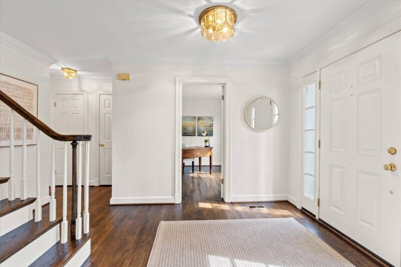 Tucked away at the end of a peaceful, tree-lined street in the sought-after Colvin Run Estates, this stunning Center Hall Colonial sits within an enclave of 27 homes on quiet streets, offering unparalleled access to trails and parks. With a commanding presence and timeless elegance, the home has been lovingly maintained by its original owners and thoughtfully updated for modern living. Step inside to a freshly painted interior that enhances the home’s original charm, while newly refinished hardwood floors add sophistication. The spacious layout is designed for both everyday living and entertaining, featuring large, light-filled rooms that flow effortlessly. A gracious foyer welcomes you with two coat closets and gleaming hardwood floors, leading to an elegant living room with a wood-burning fireplace and custom mantel. The formal dining room, bathed in natural light, overlooks the private backyard and features custom molding and a classic brass chandelier. The main level also includes a private office or den, a centrally positioned powder room, and an inviting family room with a wood-beamed ceiling, impressive stone fireplace, and sliding glass doors that open to the expansive deck. The eat-in kitchen is well-appointed with cherry cabinetry, granite countertops, updated stainless-steel appliances, two pantry closets, and double French sliding doors leading to outdoor living space. A convenient garage entrance is located just off the family room. Upstairs, the primary suite serves as a tranquil retreat with a spacious sitting area, walls of closets—including a large walk-in—and a beautifully updated en-suite bath featuring a double vanity with quartz countertops and an oversized walk-in shower with custom tile. Three additional bedrooms offer generous space, natural light, and ample closets. A full hallway bathroom with a tub-shower combination serves these rooms, while a dedicated laundry room with built-in cabinetry adds convenience. Two linen closets provide extra storage. The lower level offers endless possibilities, with a private fifth bedroom, a large walk-in closet, and a cozy brick fireplace anchoring the entertainment area. A wet bar with a sink and new mini-refrigerator makes it perfect for movie or game nights. A full bathroom on this level is ideal for guests or multi-generational living. Abundant storage, multiple closets, and a spacious utility room enhance functionality. Sliding glass doors lead to a slate patio and private backyard, seamlessly blending indoor and outdoor spaces. Set on 1.056 acres, the home’s exterior is equally impressive. A charming brick walkway leads to the inviting front entrance, while tasteful landscaping adds to its curb appeal. The expansive rear deck offers stunning views of mature trees and protected parkland near Difficult Run and the Cross County Trails. The recently replaced roof provides added peace of mind. Beyond its natural beauty, this home offers unbeatable convenience. Ideally located just minutes from Vienna, Reston, Great Falls, and Tysons, providing easy access to premier dining, shopping, and entertainment. Major commuter routes, including Route 7, the Dulles Toll Road, and I-495, are all within close reach, making travel throughout the region effortless. For those who commute into D.C. or surrounding areas, nearby Metro stations and Dulles International Airport provide additional transportation options. Additional highlights include newly refinished hardwood floors, fresh neutral-toned paint, new carpeting in all upper-level bedrooms, custom molding and trim, and newer Andersen and Marvin windows and sliding glass doors for improved efficiency and aesthetics. Three wood-burning fireplaces add warmth and character throughout the home, making this an exceptional place to call home!.