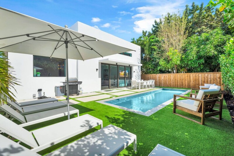 Welcome to modern luxury living! Newly built (2022) masterpiece, 5 beds, 2.5 baths. Soaring 18 ft+ ceilings, full open living concept. Flooded with light, seamless indoor-outdoor flow. Gated, turfed property for privacy. Turn-key oasis, meticulously curated. High-quality Brazilian furniture, captivating artwork. Prime West Buena Vista location, near Miami Design District, Midtown Shops. Easy access to Miami Beach via Julia Tuttle causeway. Stylish retreat or income-producing investment. Experience contemporary living!.