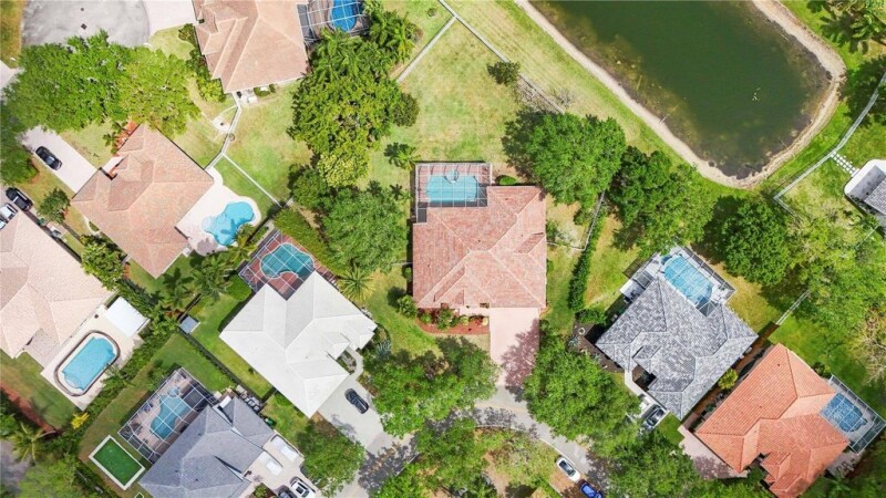 Spacious & elegant 5 BR/3.5BA home on oversized 1/2 acre + lot in prestigious gated community. Features new 2024 roof, hurricane-impact glass w grand entry door. Inside, enjoy volume ceilings, tile floors, formal living/dining w nearby 1/2 BA and a 23ft-ft family room that opens to an eat-in in kitchen w quartz counters, high-gloss cabinets and spacious pantry w counter bar. Private master suite w walk-in closets, spa style bath w tub & shower and adjoining 5th BR. A separate wing offers 2 BR's with shared bath & 1BR w adjacent cabana bath & laundry room. Outdoors, enjoy a screened patio, stone accented pool/spa & sun deck on one of the largest lots in the community. Newer AC's, 3 car garage w storage, big paver driveway. Walk to A rated elementary school. Well maintained HOA w low dues.