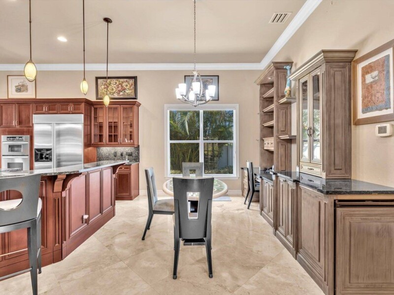 Set within prestigious Sherwood Park, this opulent courtyard residence offers unparalleled elegance. Boasting five bedrooms, baths, and a separate guest house. Every detail ensures an extraordinary living experience.The open floor plan features a chef's kitchen w/rich dark wood cabinets, a center island, top-of-the-line SS appliances with gas stove, cater to the culinary enthusiast. A breakfast area flows into a lavish family room w/a wet bar and built-in cabinetry. The formal living and dining rooms with a gas fireplace are perfect for entertaining. The primary bedroom features an ensuite bath, built-in cabinets, and a sitting area. It offers views of a lushly landscaped courtyard with heated spa. Situated on a .29 lot w/ no HOA, close to beach, golf courses, and Atlantic Ave.