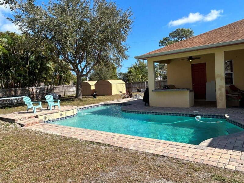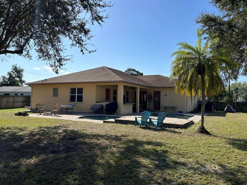 MUST SEE TO APPRECIATE!!! Charming 5 bedroom, 3 bath pool home with a fenced in yard, loaded with upgrades on a nearly half acre lot. Granite Countertops, 42 inch cabinets, crown molding, large outdoor pool patio with built in outdoor grill, summer kitchen and much, much more. Conveniently located close to shopping, restaurants, beaches and medical facilities. Large master suite features dual walk in closets, separated dual vanities, and jacuzzi tub. Garage has been converted into an extra bedroom, which would be converted back at the buyer's request. NEW Water Heater 2024! Home security system and irrigation well fed sprinkler system are in place, but have not been used recently.