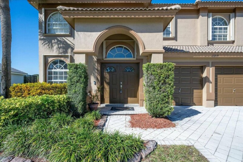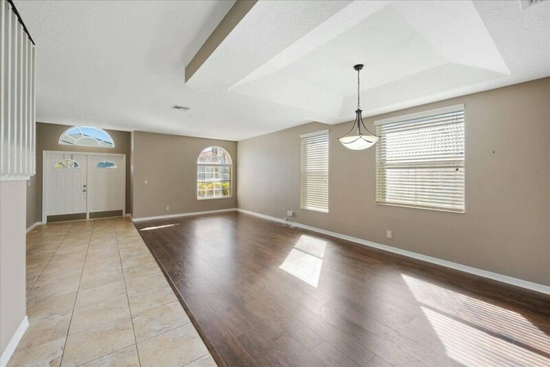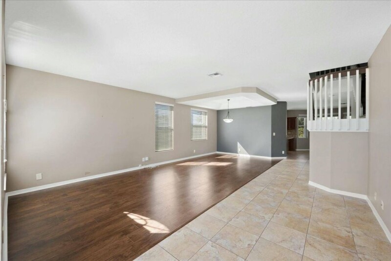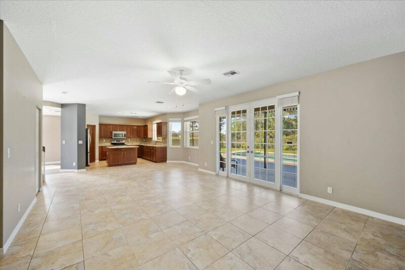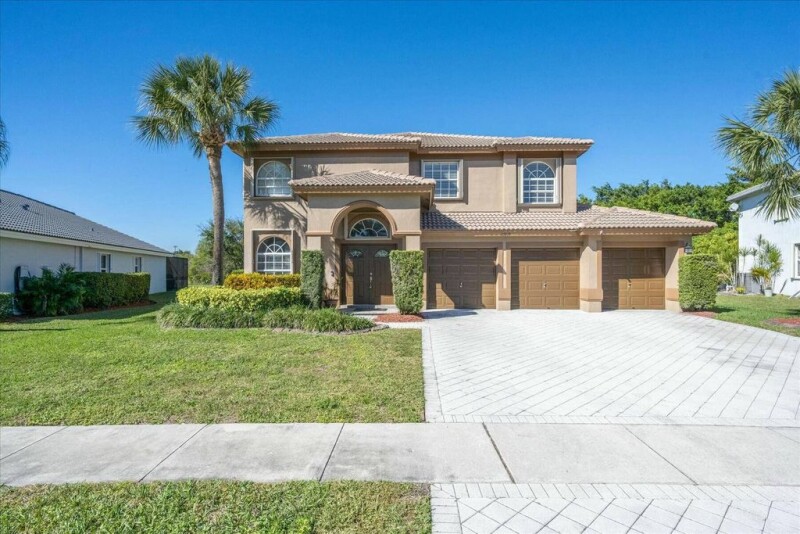 This stunning home in the gated Grand Isles community features an oversized, fully fenced lot with preserve and lakefront views. The spacious floor plan includes a formal living and dining room, a gourmet kitchen with stainless steel appliances, granite countertops, a center island, and a breakfast area. With 5 bedrooms and 3 full baths, there's a guest bedroom and bath downstairs and 4 bedrooms upstairs, including a master suite with a private balcony, granite counters, and a glass-enclosed shower. Additional features include tile and wood laminate flooring, a screened patio, an in-ground pool with a new salt system, a newer water heater, and a laundry room with a washer/dryer and wash tub. Enjoy a community clubhouse, amenities, and proximity to top-rated ''A'' schools.
