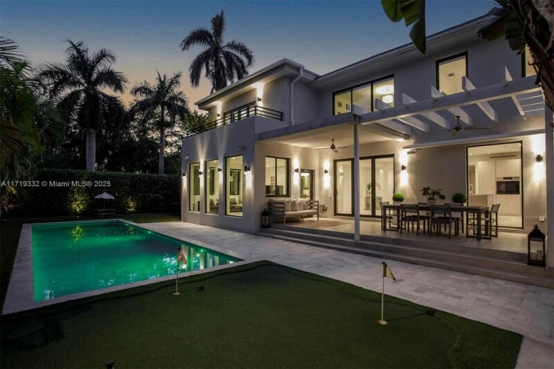 A true architectural masterpiece, this reimagined mid-century modern Miami Beach home exudes timeless elegance. Completed in 2020, this 6-bed, 5.5-bath sanctuary is bathed in natural light w/ an open floor plan, expansive rooms, & walls of windows. Floor-to-ceiling glass & pocket doors in the kitchen seamlessly connect the indoors to the lush outdoor living area. The home sits on a manicured 11,116 SF corner lot with Italian finishes, wide white oak floors, & a CESAR kitchen w/ DACOR & MIELE appliances. Outdoors, enjoy a heated saltwater pool, gourmet chef’s kitchen, putting green, adult-sized chessboard, trampoline, & premium Astroturf. Ambient lighting & mature landscaping create a serene private retreat. A sleek custom 2-car carport & private 1-bedroom guesthouse complete this treasure.