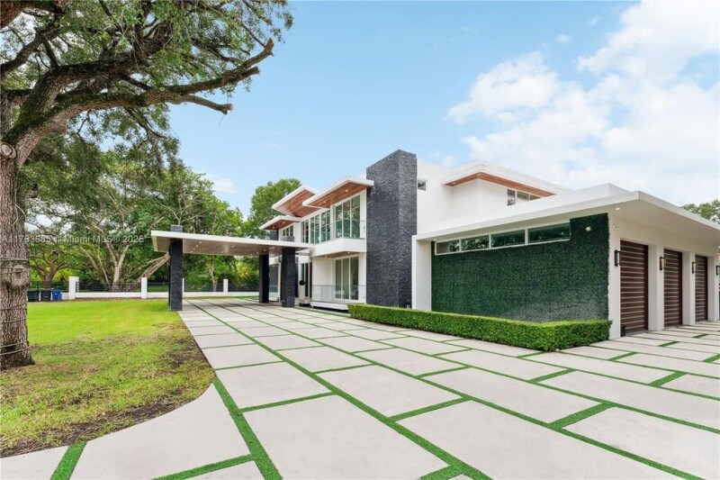 Resort-style living on a Pinecrest Acre+ lot, "PERFECTION". A 2020-built modern work of art. Greeted by soothing sounds of tranquil water features from your Port Cochere, prepare to be awestruck as you enter the Grand Foyer, where majestic Imperial staircases and soaring ceilings create an ambiance of luxury living. With 10,150 sqft. of living space, 8 bedrooms, 10.5 baths, and over an acre of manicured land, this home was custom-designed for those who revel in the art of entertainment. Homes features a custom Italian kitchen, Wolf appliances, gas stoves, wine cellar, elevator, 18 zones of sound, smart features, Lutron lighting, 8k surveillance, a guest house, a dog park (with AC), gym, 3 car garage, firepit, 50ft pool/spa, summer kitchen, waterfall & near Miami's finest schools.
