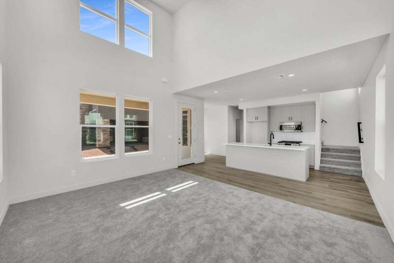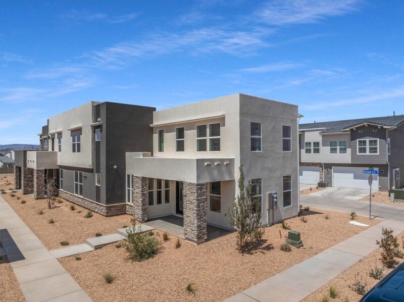 Your own beautiful townhome in desirable Desert Color! A master plan community, complete with luxury swimming pool, hot tub, 2.5 acre resort lagoon, beaches, and other amenities. Modern, open floor concept, with in-house interior designed finishes, inviting spaces, and energy efficient smart home systems, make this home the perfect place for you to relax, work, or gather with friends. For those looking to invest, the convenient location and numerous amenities make it a desirable place to live. Come see the model home at: 5983 S Carnelian Parkway, Monday-Saturday 10 AM - 5 PM. Street address is not final and is subject to change. Images provided are solely for illustrative purposes and may not accurately represent the final construction of the home. Floor plans, features list, layouts, square footage, dimensions, design elements, and finishes may vary from the renderings, plans and specification, are not guaranteed, and are subject to change at the discretion of the Seller until final purchase contract.