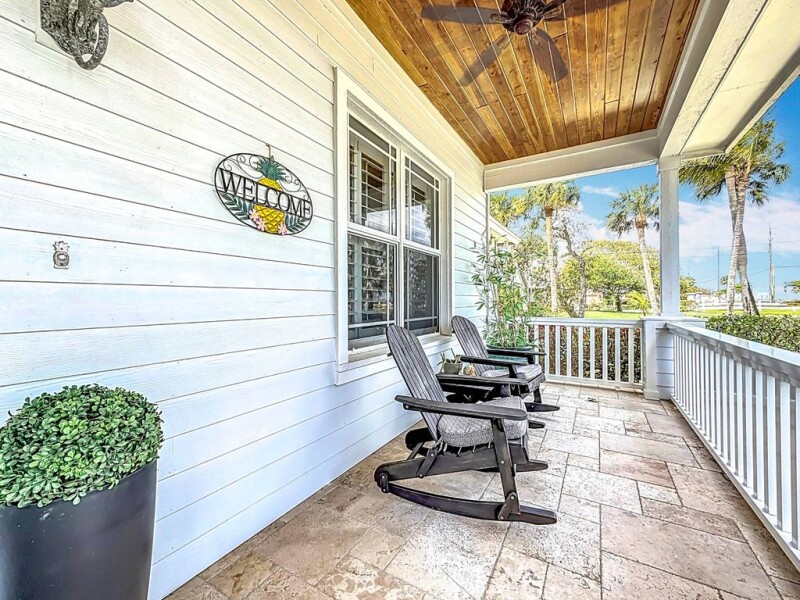 Discover the epitome of coastal elegance with this stunning waterfront estate, nestled on over half an acre of lush, meticulously landscaped grounds. Located just 1.5 miles from the vibrant heart of downtown Jensen Beach, this Key West-inspired craftsman-style home offers a serene retreat with a private, tropical backyard. Featuring three spacious bedrooms, three luxurious full baths, and an additional private den or office, this residence boasts soaring 10-foot ceilings and premium finishes throughout. Begin your day with breathtaking sunrises from the covered front porch overlooking the shimmering Indian River Lagoon, or unwind on the expansive covered back porch, perfect for entertaining and offering ample space for a custom pool.Residents enjoy access to a community dock.