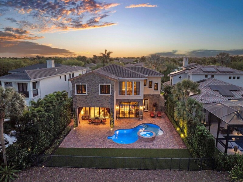 Welcome to this stunning 4-bedroom, 4.5-bathroom home. Step outside to a serene pool and spa overlooking th1 1st hole of Parkland Golf Club. Enter through a magnificent mahogany wood door and be greeted by elegant marble floors on the first level and rich, real wood on the second. For wine enthusiasts, a custom wine cellar holds up to 800 bottles. Impact Glass doors and windows. Enjoy culinary delights in the butler's pantry, complete with a Sub Zero refrigerator, center island, double ovens, and two buffet counters. The spacious living room features a wet bar, ideal for entertaining. The primary suite boasts two custom closets, a dry bar, and an oversized bathroom with dual vanities and a double-sided shower.