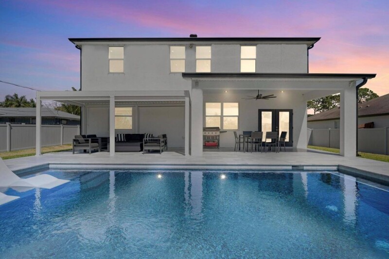 Welcome to this beautiful 5 bedroom, 3.5 bath home located in the sought-after city of Port St. Lucie! As you enter the two-story home, you'll be greeted by a bright and airy open concept floor plan that creates a seamless flow from the living room to the kitchen and dining area. Envision hosting gatherings with loved ones in this chic space filled with natural light and modern finishes. The primary bedroom is conveniently located on the first floor offering privacy and luxury with its en-suite bathroom. Upstairs, you'll find a versatile loft that can be used as an additional living area and flex space. The possibilities are endless! Step outside into your own private oasis complete with a salt water pool and elegant marble patio, perfect for having summer BBQs or lounging in the FL sun.