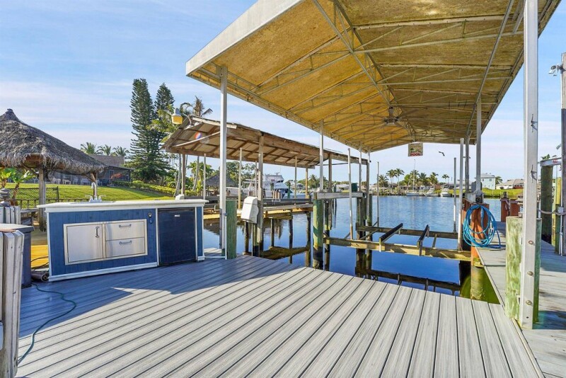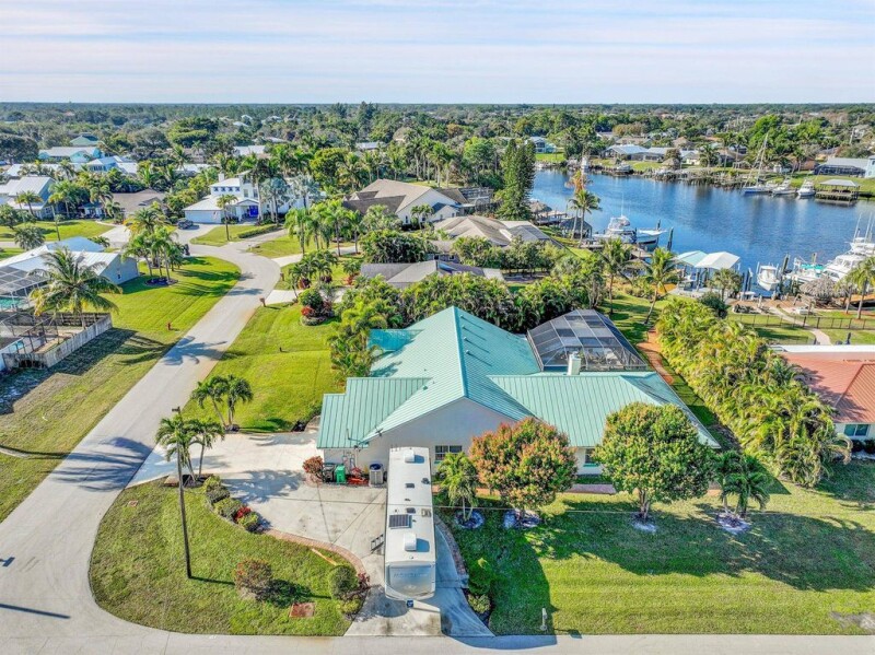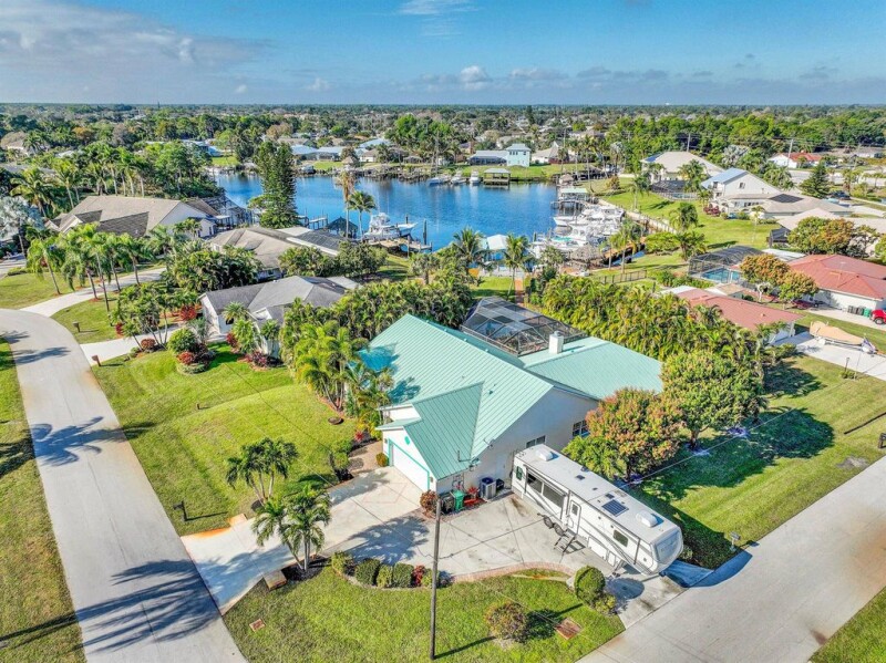 "Hurricane Hideaway" protected keyhole harbor for your boat. Make the Ocean your playground! Deep water cove, no fixed bridges to ocean, by boat it is only 20 minutes to Sailor's Return and 40 minutes to the inlet. Boat to the Bahamas in just 3 hours! Come see this custom built spacious CBS pool home. 4 bedrooms, 2 elegantly designed bathrooms. Kitchen is equipped with stainless steel appliances, granite countertops and Italian glass tile backsplash. Horseshoe driveway and RV parking with electric! Covered 12,000 lb boat lift, lighted 40' dock is supplied with electric and city water. Large screened pool area, custom waterfall into heated pool. Lush landscaping with irrigation system on a corner lot. Monitored security system with cameras. Hurricane impact windows. Great for entertaining!.