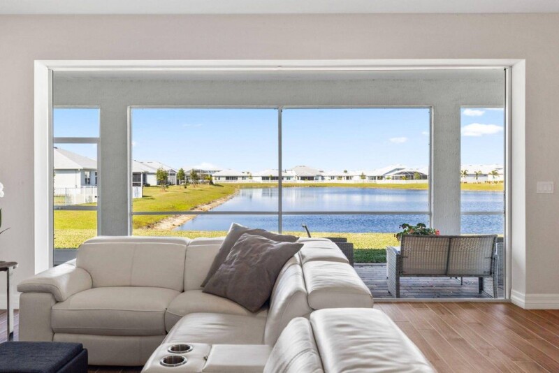 This stunning 2022 built 4-bedroom, 2.5-bath home with a 3-car tandem garage offers breathtaking lake views and modern luxury. The open floor plan flows seamlessly into a chef's kitchen featuring quartz countertops, stainless steel appliances, a gas cooktop, and a wall oven. The spacious primary suite boasts an oversized walk-in shower, dual sinks, and a custom closet. Being under builder warranty, this house still has that ''like-new'' feel. Impact windows and doors provide peace of mind, and with one of the lowest HOA fees in Tradition and negotiable furnishings, this home is an incredible find. Plus, design the backyard of your dreams by adding your own pool to enjoy the stunning lake views. Only 30 minutes to the beach, and 45 minutes to Palm Beach International Airport!.
