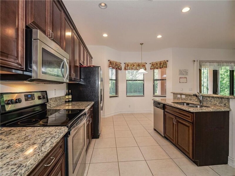 This wonderful home sits on a secluded preserve lot in the desirable gated community of Verolago. This San Simeon model features large master suite downstairs, 10' ceilings, 8' doorways, impact glass with French doors, 20' ceilings in living room, granite counter tops in kitchen and bathrooms and so much more. Low HOA features: all lawn care, bush & tree trimming, fitness center, heated community pool, lighted tennis/pickleball courts and a kids play area. Close to beaches, restaurants and shopping.