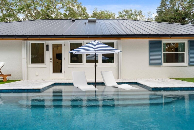 Experience coastal luxury with this fully furnished CBS home, just a short stroll from the best beach in Indian River county. Boasting a sleek Miami-style design, this 3-bedroom, 2.5-bath home features an open, split floor plan with dual master suites, stunning Italian porcelain floors and impact windows. Step outside to your brand new custom pool with a sun shelf, set amidst lush landscaping and a private fenced backyard. With deeded beach access and an incredible kayak launch to the Indian River, this property is an entertainer's dream. Enjoy peace and quiet while staying close to everything.