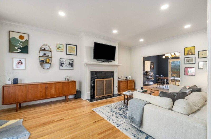 Welcome to this beautifully maintained end-unit townhome with a rare two-car garage in the heart of Morningside. Inside, discover gleaming hardwood floors throughout and a light-filled living room featuring a cozy fireplace and charming bay windows overlooking lush landscaping. The inviting space flows into a separate dining room with new lighting, rich wall color, elegant molding and French doors leading to the back porch. The bright and refreshed kitchen is a chef’s delight, boasting painted cabinets, new lighting, granite countertops, stainless steel appliances and double French doors that flood the space with natural light and open to the back porch. Both the kitchen and dining room seamlessly connect to an oversized deck—ideal for relaxing, grilling or entertaining guests. A stunning moody half bathroom on the main level features a marble-topped console vanity for a touch of luxury. Upstairs, brand-new hardwood floors lead to two expansive bedrooms. The owner’s suite impresses with a bay window, a spacious bedroom and a totally renovated en suite bathroom featuring separate marble-topped vanities and a seamless glass shower with a bench and a built-in niche. The sizable second bedroom with a high ceiling, transom windows and an en suite bathroom. And don’t forget the drive-under two-car garage with a bonus storage room. Morningside Park is a small, sought-after community, a true hidden gem, where homes rarely hit the market. Just moments from Morningside Village’s eateries–including Alon’s Bakery, shops, such as Savi Provisions and the Morningside’s vibrant Saturday Farmers Market. Welcome home.