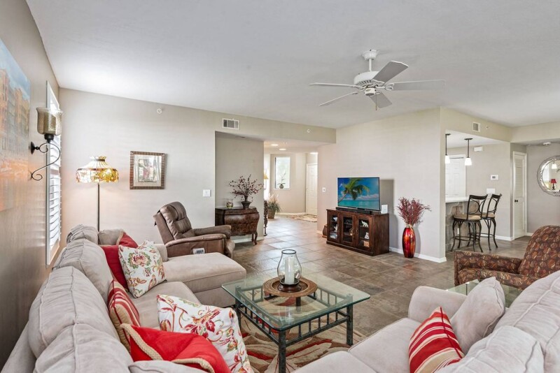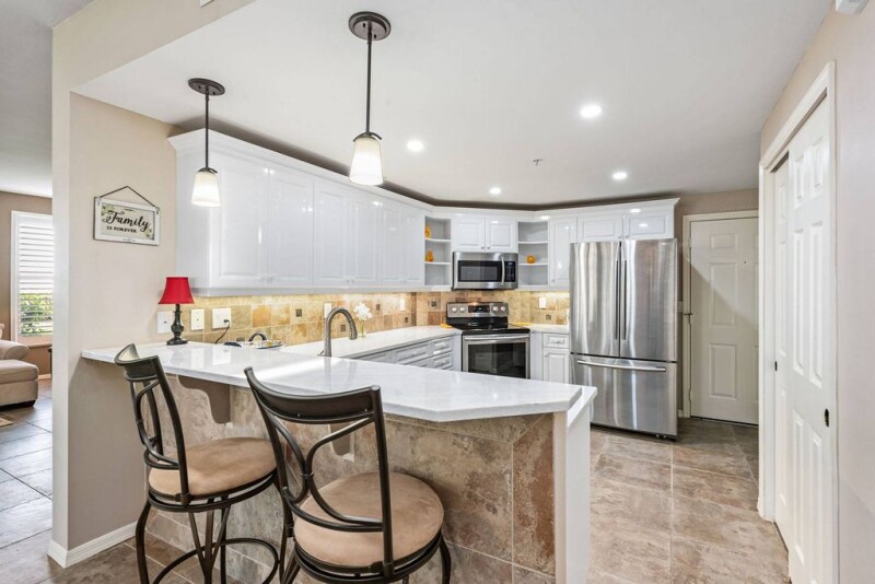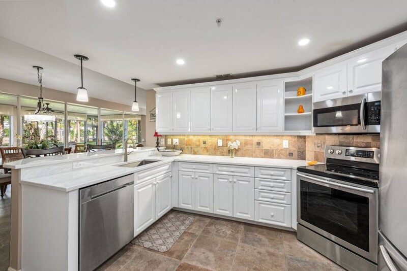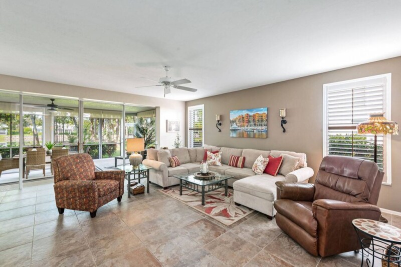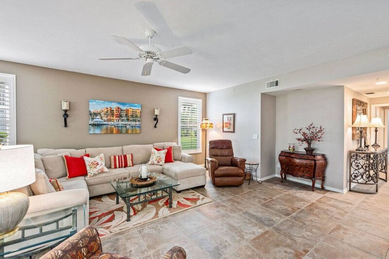 *** SELLER WILL PAY THE $40,000 SOCIAL MEMBERSHIP ONE-TIME CLUB FEE *** Buyers can take advantage of the clubs social golf program offering instant golf access to those who join the membership wait list. A unique opportunity! This ground-floor end unit offers a distinctive blend of privacy and convenience with its mature landscaping located between downtown Naples and Marco Island. Upon entering this three-bedroom, three-bath condominium, you will be greeted by double doors with tile flooring and plantation shutters. The kitchen features white cabinetry, quartz countertops, breakfast bar, pantry, stainless appliances, and under cabinet lighting. Adjacent dining and living areas have natural light from sliding glass doors. Enjoy beautiful lake views from an expansive 16-by-42-foot screened lanai which features vinyl sliders, solar shades and electric storm shutters. The primary and two guest bedrooms each offer en-suite baths with granite countertops and soft-close drawers. The primary also offers a walk-in closet, dual sinks, soaking tub and access to the lanai from sliding glass doors. Perks include new HVAC, separate storage area, detached one-car garage and Waterford residents can enjoy their community pool. Enjoy a newly renovated clubhouse with restaurant, access to championship golf, pickleball, social membership, large community pool and cafe, fitness center, exercise classes and more, tennis, bocce and a private gated environment.