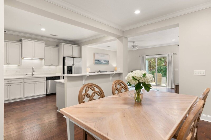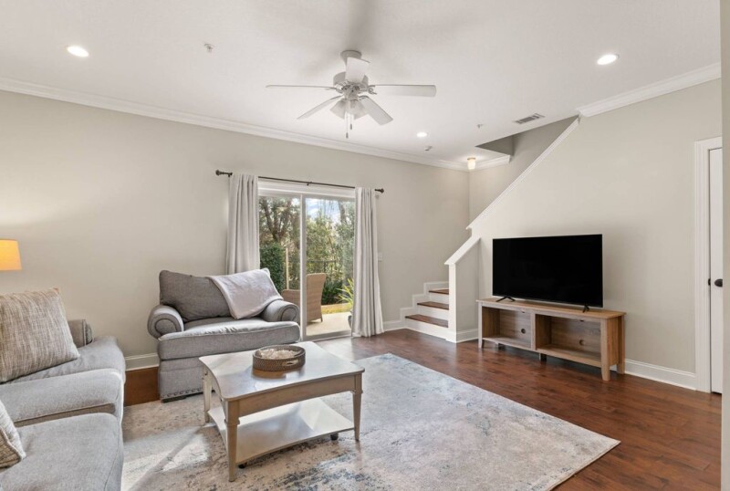 Easy maintenance in a great location! 1302 Reserve Court is a 3 bedroom, 2.5 bath townhome in the Reserve at Demere. This property has a quiet location, overlooking green space and backs up to the Retreat Golf Course. All furnishings will convey with the property, in addition to the washer & dryer set. Enjoy hardwood floors throughout, neutral cabinetry, and stainless appliances. The first floor includes an open kitchen, dining, and living area, in addition to a powder room. On the second floor you'll find 3 bedrooms, 2 bathrooms, and a laundry room. This property is very well maintained and is a fantastic primary residence, second home, or investment property. This unit has not been rented, but has great rental potential. The Reserve at Demere offers a pool and is conveniently located with easy access to the causeway, shops, restaurants, the village, and beach.