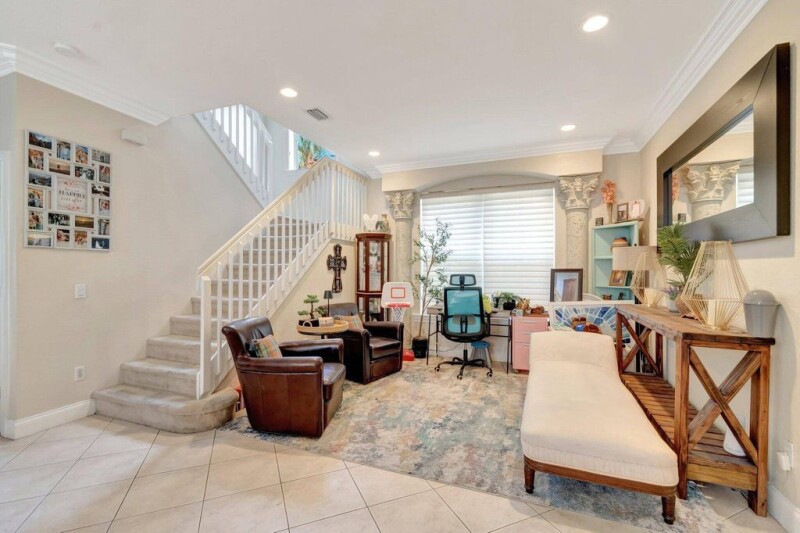 Welcome to Nautica Isles, a true gem with a vibrant, welcoming atmosphere! This stunning 5-bedroom, 3-bathroom home offers spacious living with a large eat-in kitchen with an island and 2 generous-sized pantries. There is also a versatile downstairs bedroom perfect for an office, den, or guest suite with a full bath. The master suite is on the second level with two large walk-in closets and an ensuite bath, alongside 3 additional generous bedrooms. Recent updates include a 2025 hot water heater, 2024 washer and dryer, 2020 AC. Enjoy relaxing on the covered patio overlooking lush greenery and a canal. This gated community features low HOA fees, resort-style amenities and A rated schools! The seller is motivated so don't miss out on this incredible opportunity!.