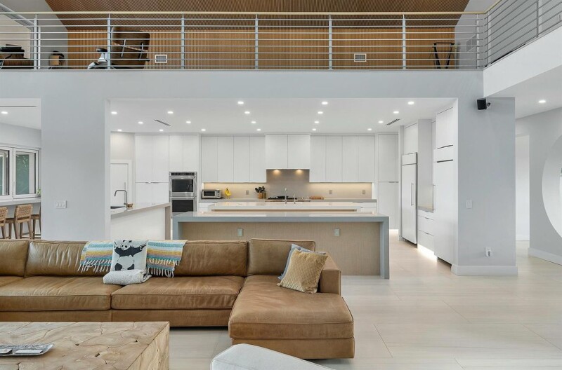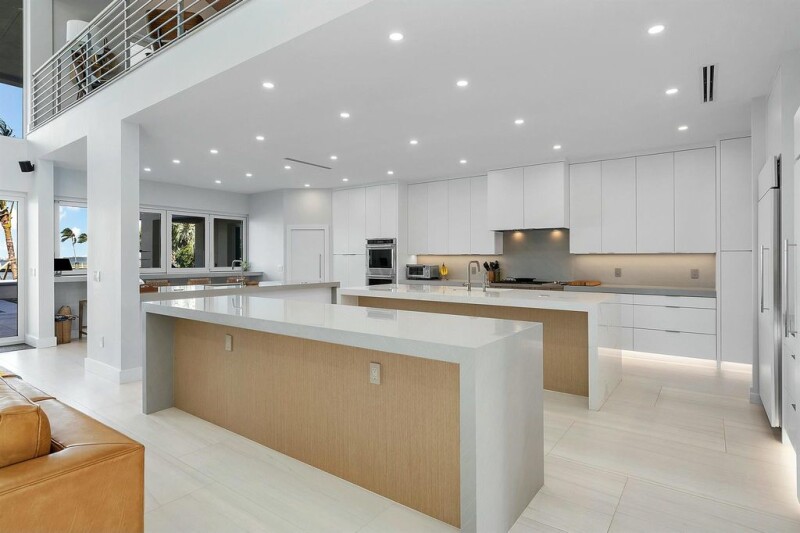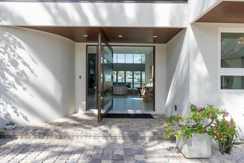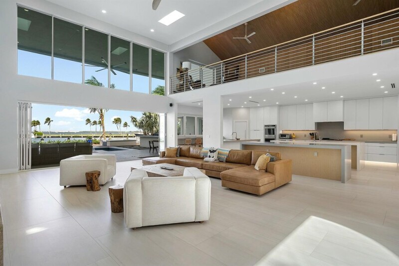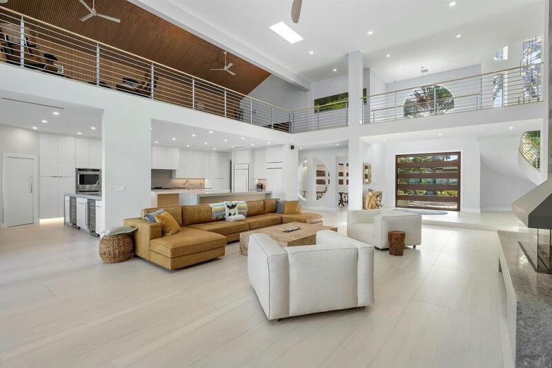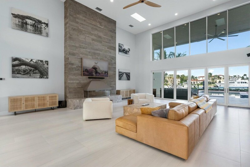 Experience luxury living in this newly gut-renovated contemporary home, offering five bedrooms, six and a half baths, and 115 feet of waterfront. The living room features soaring ceilings, creating a bright and inviting ambiance. The expansive pool deck and lanai are ideal for entertaining, complete with a summer kitchen, pool, and spa. Everything is brand new, from the roof to the floors, including impact windows and doors, as well as an oversized garage. Primary bedroom on ground floor complemented by a second primary suite on the upper level, accessible via an elevator. A full-house generator ensures peace of mind. Boating enthusiasts will love the private dock, which is equipped with a 20,000-pound boat lift.