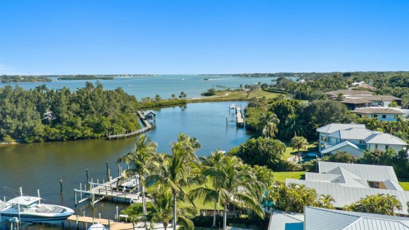 Discover your slice of paradise in this stunning waterfront home nestled beneath the iconic Banyan tree canopy. This exquisite property with private entrance boasts nearly 500 feet of prime waterfrontage at the mouth of the St. Lucie River and Willoughby Creek. You can literally see the inlet from this property! Featuring four spacious bedrooms and 3 1/2 baths, this residence is perfect for entertaining guests. Enjoy the convenience of two boat lifts and room for an 80 foot, on just under an acre of lush landscaping. Additionally, a charming guest house offers versatile living options, ideal as a mother-in-law suite or for visiting friends or relatives. Completely remodeled, new 2023 metal roof, impact windows and generator large enough to run the main house and guest house.