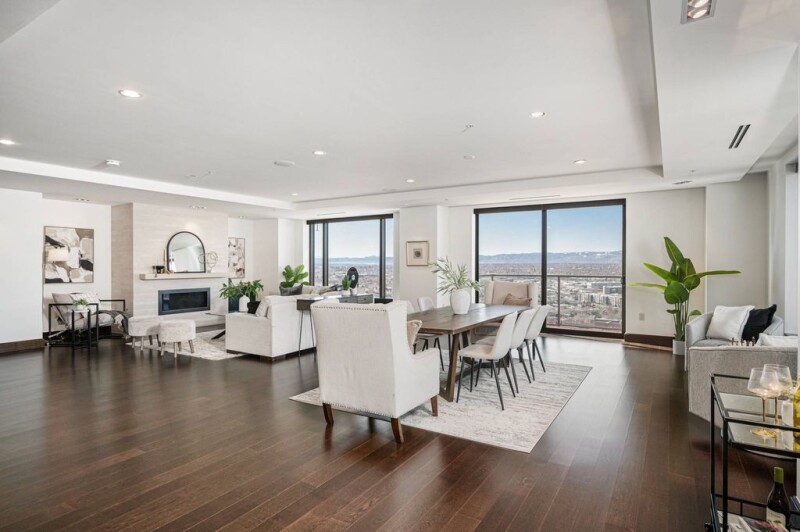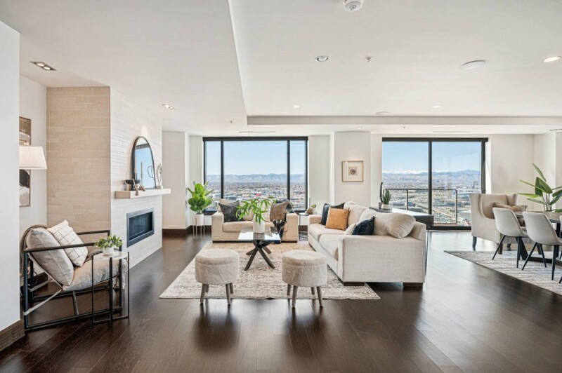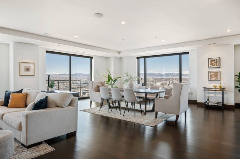 This stunning two-bedroom, two-bathroom condo with a spacious office/media room offers over 3,000 square feet of ultimate luxury living. Located in the prestigious Four Seasons Private Residences, this home boasts unrivaled mountain views stretching from Pikes Peak to Longs Peak. Designed with meticulous attention to detail, the residence features zebra wood cabinetry, top-of-the-line Miele appliances, and a sleek black granite waterfall island in the kitchen—perfect for both everyday living and entertaining. The expansive windows allow natural light to flood the space, which is complemented by beautiful hardwood floors and electric shades for ease and comfort. Both bedrooms offer luxurious five-piece ensuite bathrooms, providing a private oasis to retreat to. Indulge in the full amenities offered by the Four Seasons Residences, from 24-hour concierge service in the private resident lobby to exclusive access to a private fitness center with incredible mountain views and a residents-only house car. Through the hotel, enjoy access to the year-round pool, another fitness center, world class spa, Edge Restaurant, room service, valet, housekeeping, and more. Enjoy a lifestyle of unparalleled convenience and sophistication.