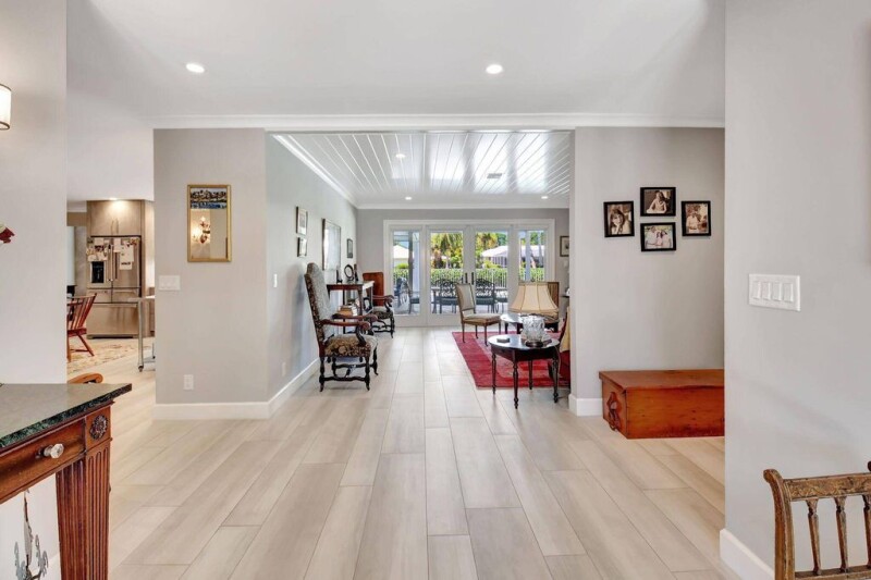 Welcome to this stunning 4-bedroom, 3.5-bathroom, 2-car plus golf cart garage, pool home nestled in the vibrant private country club of Delray Dunes. Boasting a rare blend of elegance, functionality, and luxury, this residence has been meticulously renovated throughout, offering a plethora of upgrades and modern amenities. This home underwent a remodel featuring hurricane impact windows/doors, beautiful beach wood look Porcelain Tile flooring, custom baseboards, moldings and window treatments throughout. The kitchen is a chef's dream! It underwent a stunning transformation showcasing the euro leather finish cabinets, upgraded hardware and quartz countertops with an oversized kitchen island and Kitchenaid stainless steel appliances. The expansive master bedroom has custom built-ins and.