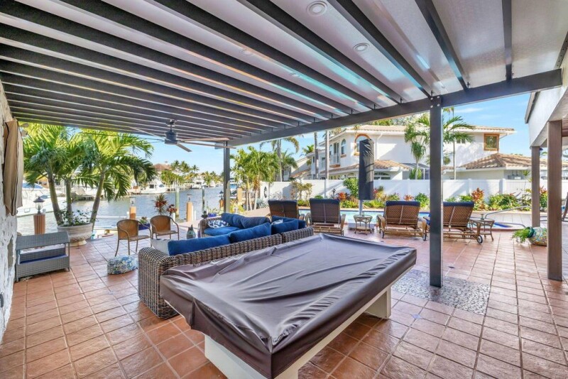 Spectacular Deepwater Masterpiece on a large corner lot in one of South Florida's most sought-after waterfront communities, this extraordinary home offers the perfect blend of architecture, modern luxury, and nature-inspired beauty. The residence seamlessly integrates natural elements, creating a harmonious space where colors and textures complement one another.Step into the expansive, open living and dining areas, where soaring vaulted wood-paneled ceilings exude warmth and freedom. The earthy tones, highlighted by lush landscaping and serene water views, invite you to experience tranquility at every turn.