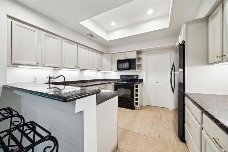 Beautiful two bedroom townhome tucked away in desirable Ethans Glen! This home has never flooded and stands 6' above the 500 year flood plain. The townhome is located in a section that gives breathtaking views of the community lake and lush landscaping. Once inside you will notice these recent improvements...interior paint, new HVAC grilles, updated lighting fixtures in the kitchen, dining room, half bath, staircase, 2 bedrooms and primary bath. Notable improvements made to both full baths and the half bath. Water heater and garbage disposal have also been recently replaced. This home features lots of guest parking and is centrally located in the community by the lake, clubhouse and walking trails. Zoned to acclaimed Spring Branch ISD including coveted Memorial High School. Carport is spot J.