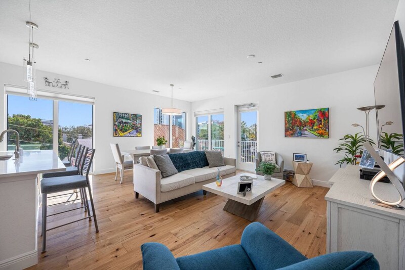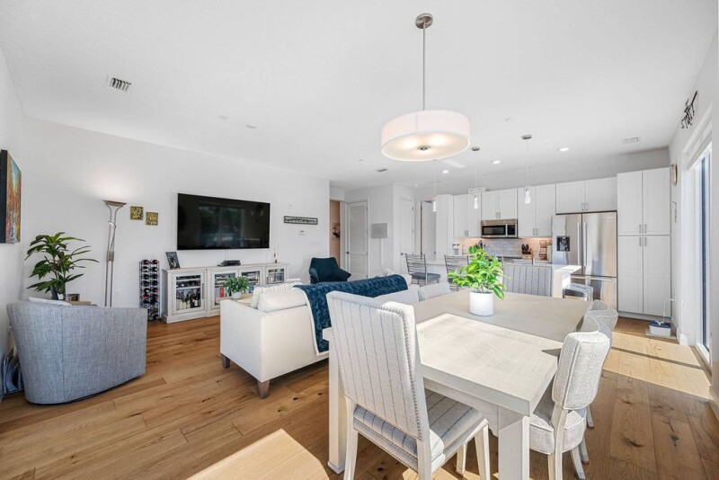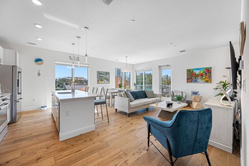 Great Opportunity…New 3-Bedroom Corner Unit in Downtown St. Pete for under $775,000! Plus, low HOA fee with fully funded reserves! Palm Beach luxury meets downtown chic in this contemporary 3 Bedroom, 3 Bathroom corner unit. In the heart of vibrant downtown St. Pete, in a highly desired no flood / non-evacuation zone, this southwest-facing unit, completed in 2023, spans a generous 1,650 square feet with soaring 9.5-foot ceilings. Expansive 8-foot hurricane-rated windows and balcony door fill the home with natural light while providing peace of mind. The gourmet kitchen features Bosch stainless appliances, quartz countertops, soft-close solid wood cabinetry, a pantry closet, under-cabinet lighting and an oversized center island with eat-in seating. The king-sized primary suite has an oversized custom walk-in closet, en-suite bath with double vanities, Carrara tile and a seamless walk-in shower. The split-bedroom layout ensures privacy for the second bedroom, which also features a custom walk-in closet, en-suite bath with double vanities and a shower/tub combination. The versatile third bedroom can serve as a guest room, home office or personal fitness studio, with the third full bath conveniently off the main hall. A spacious laundry room, ideally tucked away near the front entry, includes a full-size washer and dryer plus custom built-in cabinetry for additional storage. Your assigned parking space is in the gated, controlled access under-building garage. Building amenities include a community room, fitness center, outdoor patio and dog run with washing station. In a tranquil neighborhood just blocks from Central Avenue and Beach Drive, you are walking distance to award-winning restaurants, shopping, Publix, the waterfront, museums, parks and St. Pete Pier. Explore nearby cycling and pedestrian trails or hop on the SunRunner for quick access to St. Pete Beach. This move-in ready residence, priced to sell, invites you to live in the center of it all! Furniture is available for purchase. Floor plan slide #40. Must-see Vimeo video tour:.
