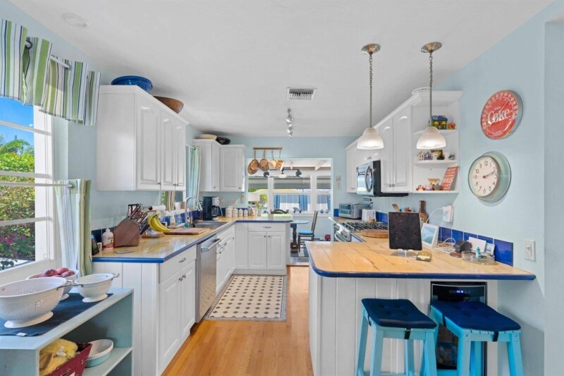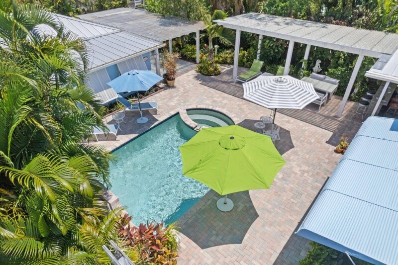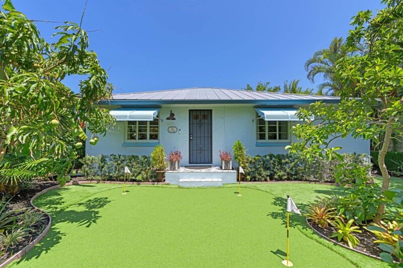 Located just 4 blocks north of downtown Lake Worth Beach. Adorable, cottage style pool home with a 2 bedroom, 2 bath main house, and a 1/BR,1 BA guest cottage that lives like a resort. The main house has original hardwood flooring, updated kitchen w/gas range, updated baths, hurricane impact windows, and a metal roof. The family/dining room opens out to the large covered patio, and pool deck. The guest house has 1 bedroom, and a full bath, with a kitchenette. There is a covered carport with gated entry, and a storage garage behind the guest house. The property is fully landscaped, and fenced for security, and keeps the pets safe. A short bike ride, or perfect golf-cart neighborhood, close to the beach, downtown, and golf course. Heated pool and spa, and a putting green in the front yard!.