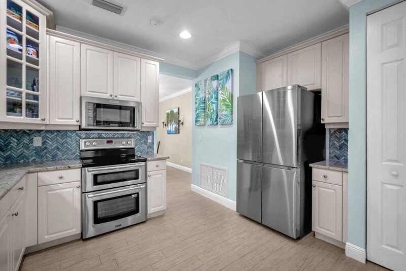 BRING ALL OFFERS!!! This house has it all! 5 bedrooms, 3 baths, heated salt-cholrination pool & spa with LED lights, and travertine paver deck. Plenty of granite countertops in kitchen making it a chef's delight. New Cali bamboo wood flooring in the upstairs. Owners bathroom was just redone. Soak in your luxurious tub or spacious shower. Built-in murphy bed system in 1st floor bedroom. Impact glass,French doors have retractable screening opening to your resort-style pool & spa for entertaing, landscape lighting, fully fenced yard. BOSE hardwired wifi enabled sound-sytem. Solar panels for electric bill savings. ROOF-2021, water heater-2022, flexible tiling in garage floor. HOA includes lawn maintenance. UV light equipped AC systems.