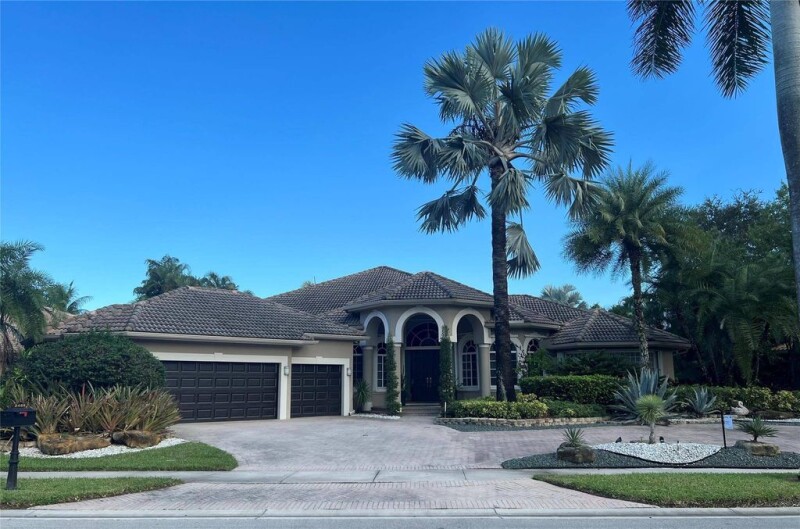 Stunning property in the prestigious WESTON HILLS CC. As you enter you are welcomed by an impressive grand foyer with soaring ceilings, extensive crown moldings and a beautiful view of the lake. Features 5 bed, 4 baths and 2 half baths plus an office. Premium 18,265 sqft waterfront lot with a pool. Fantastic floor plan with 4 in-suite bed, office/game room next to a luxurious master suite with a view of the pool and the lake. Kitchen with wood cabinets, granite countertop formal dining, living room and wet bar. Central Vacuum. Home has built in speakers in and outside the home. They are currently connected to a Bose Music Amplifier/Speaker amp with Bluetooth/Wi-Fi connectivity. Private backyard with pool and outdoor grill area. 3 garage and circular brick pavers. EV charging station Tesla.