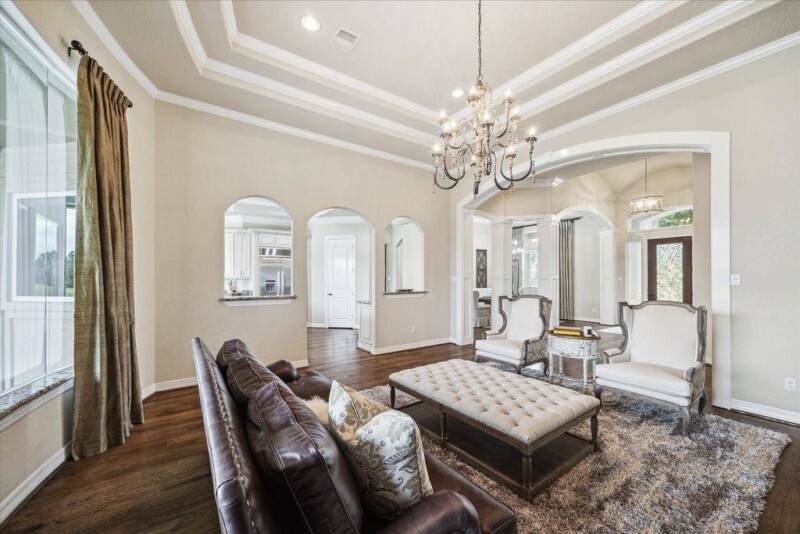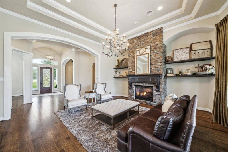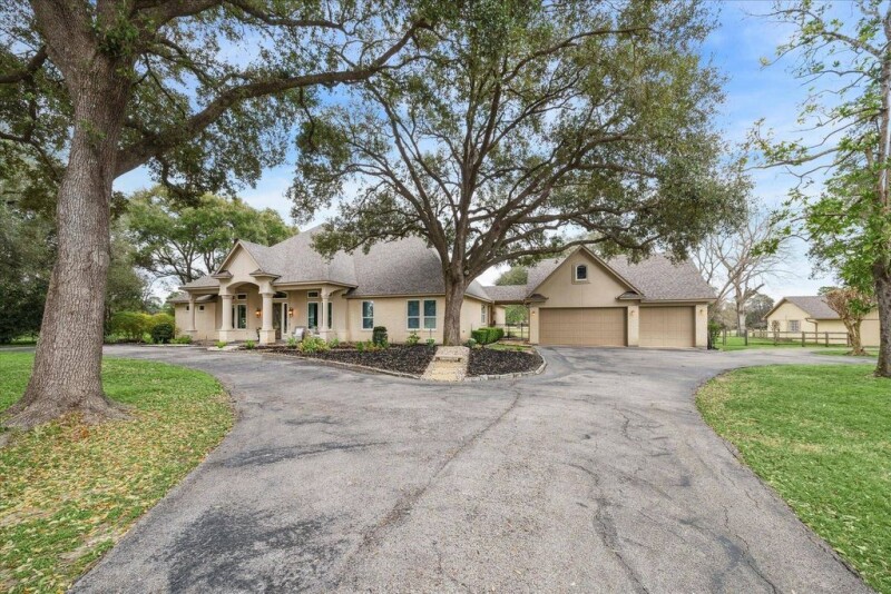 This exquisite one-story home on ~ 14 gated, unrestricted acres offers a luxurious country lifestyle with city convenience. The property includes a main house (~3,984 sq/ft) with pool and spa, a three-bedroom guest house (~1,900 sq/ft), cross-fenced pastures, a three-stall horse barn with tack room, a storage barn, chicken coop and show pen. Inside, custom features abound with coffered and tray ceilings, hardwood floors, and a chef’s kitchen boasts double ovens, a gas range, and glazed cabinetry, complemented by elegant twin pendant lighting. Spacious primary retreat offers an en suite bath with French doors leading to the backyard. Fixed glass windows in the main living area showcase the expansive views. A circular driveway with an electronic gate ensures privacy. With no restrictions, enjoy raising cattle, chickens, or FFA projects. Located minutes from the Grand Parkway, private schools, and shopping, dining, and entertainment areas. This is what freedom looks like!.