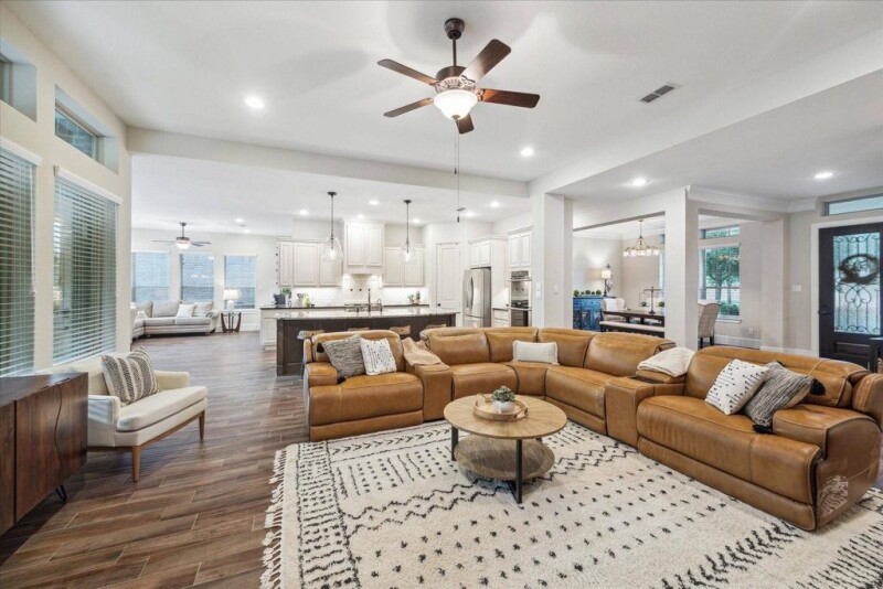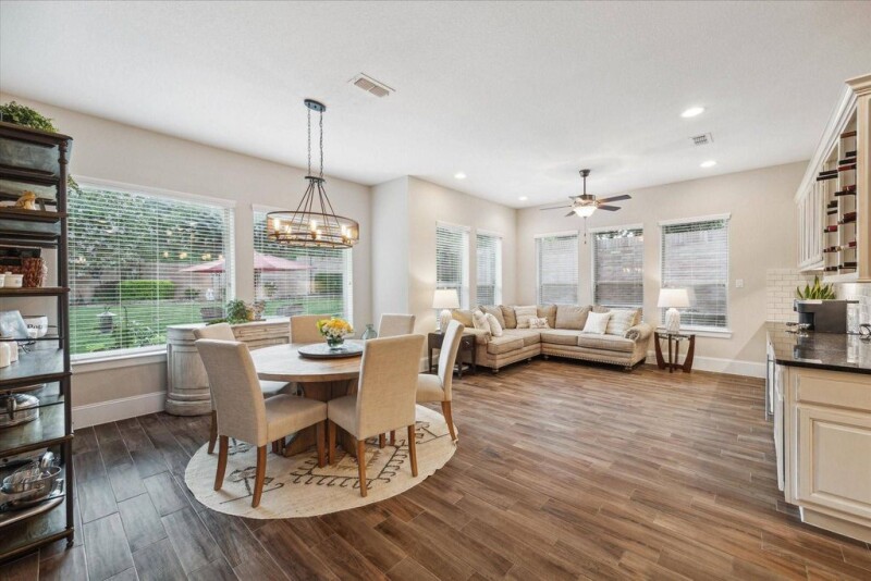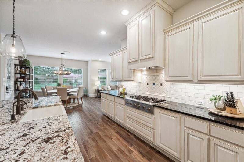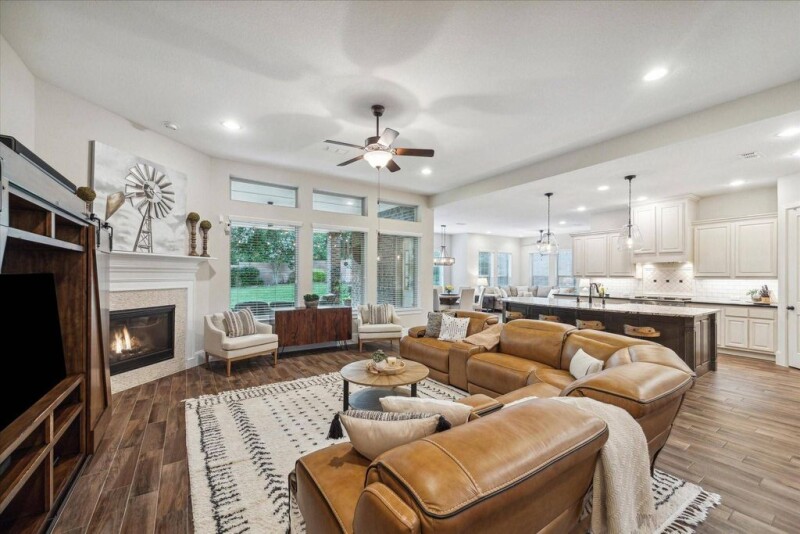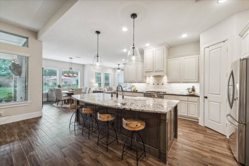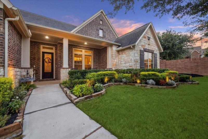 Stunning 1.5 story dream home w/ over $140k in builder upgrades that sits on an almost 1/3 acre corner lot w/ no back neighbors in the prestigious community of Fulbrook on Fulshear Creek. This spacious 5 bed, 4.5 bath home w/ 3.5 car garage & an extended patio w/ luscious landscaping & an outdoor kitchen perfect for entertaining is sure to please. You immediately feel at home after approaching the front porch & upon entering you are greeted with beautiful wood tile floors throughout, a formal dining, & an open concept living space w/ a gourmet kitchen featuring an oversized island, SS appliances, under cabinet lighting, 6 burner gas range, double ovens, wine fridge, porcelain sink & butler's pantry w/ extra seating in the sunroom & breakfast area. Relax in the casual elegance of your primary suite complete w/ spa like benefits & incredible views of the backyard. Massive game room & extra guest suite located upstairs plus, water softener & reverse osmosis. This home is a MUST SEE!!.