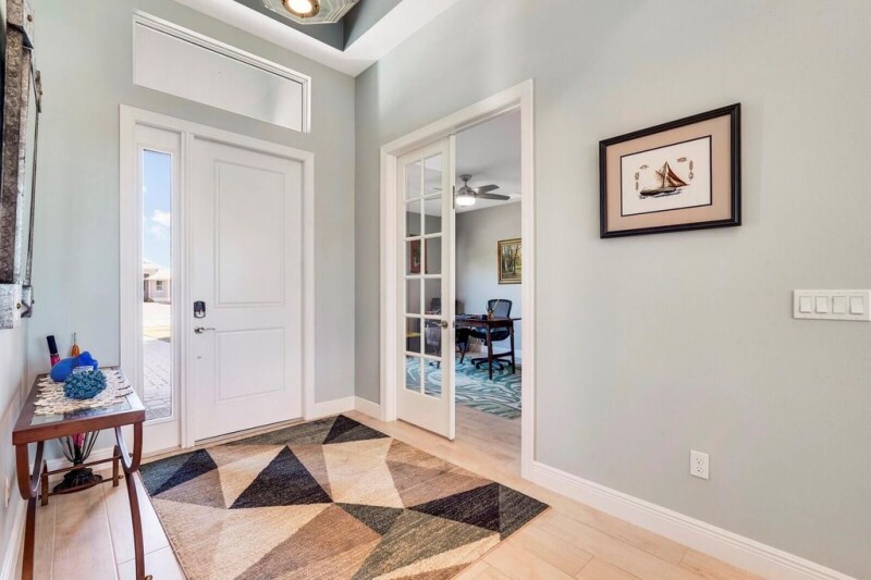 Now Offering: $5000 interest rate reduction incentive paid by seller!!! Move right into this stunning, barely lived-in, 4-bedroom, 3-bathroom, 2.5-car garage, CBS lakefront pool home, just completed December 2022, located in the gated community of Laurel Reserve. Set on a peaceful half-acre lakefront lot, this energy-efficient home boasts a private, heated pool in a full screen enclosure- perfect for unwinding & recharging while you soak in the sunny, tropical Florida winter!Luxurious touches abound, including impact windows, plank-tile flooring throughout, & soaring tray & vaulted ceilings, including a Great Room with striking exposed beams.The chef-inspired kitchen features white soft-close cabinetry, Quartz countertops,.